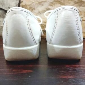SAS Siesta Moccasins White Leather Nurse Career Soft Step Heel Sz 8 Wide