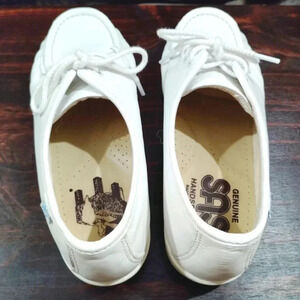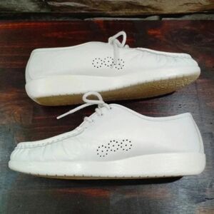 Size 8W SAS Hand-Laced Handsewn Leather Moccasins Nurse Career Soft Step Heel 8 Wide White Nursing