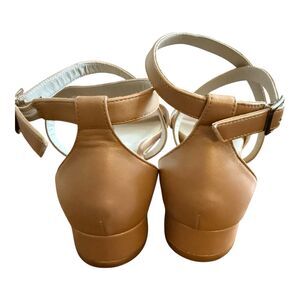 SAS Simone Italian Wedge Sandal Sz 10 Wide Caramel Brown Leather Cross Straps