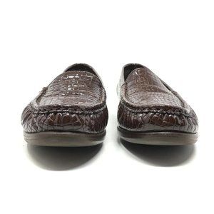 SAS Simplify 5.5 M Brown Leather Loafers Croc Embossed Womens Comfort Shoes