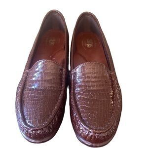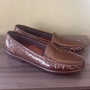 SAS Simplify Brown Crocodile Patent Leather Loafers Size 10 S (Slim). Footbed measures approximately 10”. Excellent condition. Classic and comfortable.