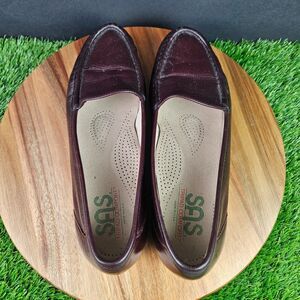 SAS Simplify Moc Toe Comfort Slip On Loafer Leather Burgundy Wine Women's 9.5 N