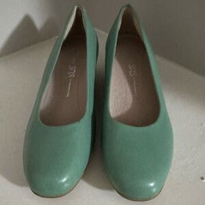 Leave a comment below! Brand new, SAS, Sofia, Green wedge shoes, size 6. Premium leather uppers. Handcratted in Tuscany, Italy.