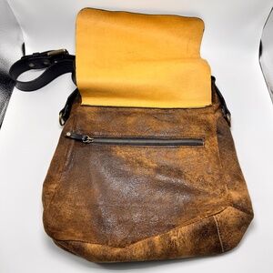 SAS San Antonio Shoemakers Soft Brown Leather Distressed Crossbody Bag Purse from the Portrait Collection with Yellow Lining Color
