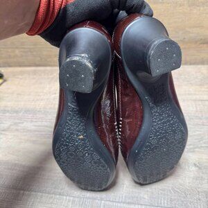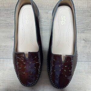 SAS Sonyo Bordo Red Patent Leather Slip On Low Heel Pumps Women's Size 8
