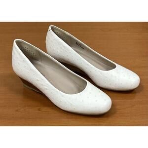 SAS Sophia Wedge Pumps White Italian Leather 9.5M Slip On Round Toe Comfort