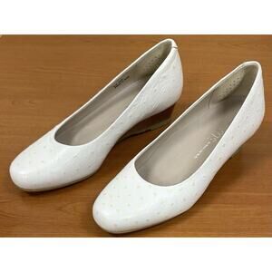 SAS Sophia Wedge Pumps White Italian Leather 9.5M Slip On Round Toe Comfort