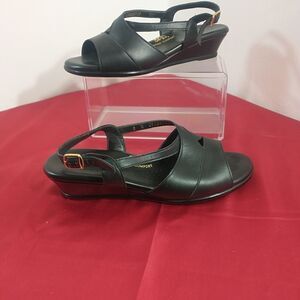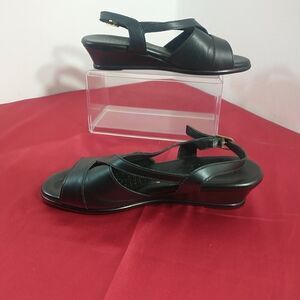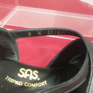 SAS Strappy Sandals Shoes Womens Size 8W Black Patent Leather Wedge Adjustable. Condition is Pre-owned.