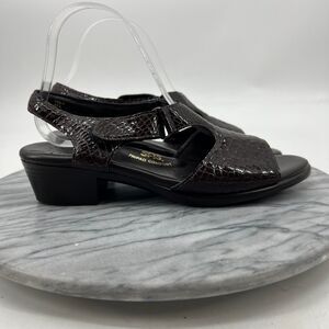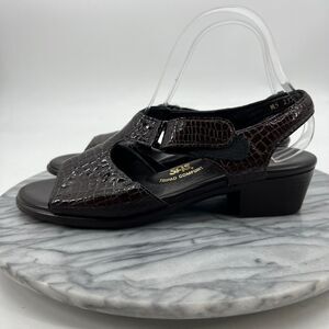 SAS Suntimer Heeled Sandal Women 9N Brown Croc Patent Leather Slingback EZ Strap