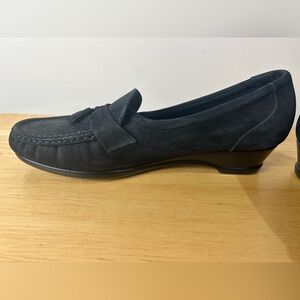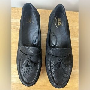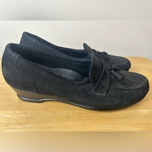 SAS Taylor Slip On Wedge Loafers w/Tassels Onyx Suede Size 8.5 Comfort Shoes USA