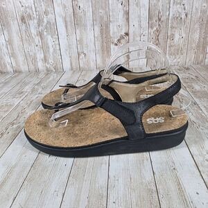 Keywords: SAS sandals, thong sandals, black sandals, comfort sandals, adjustable sandals, cork footbed, casual footwear, womens sandals, summer shoes, beach sandals, walking sandals, size 10M, SAS shoes