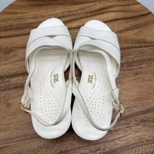 SAS Tripad Comfort Shoes Womens Size 8 WW White Leather Wedge Slingback Sandals