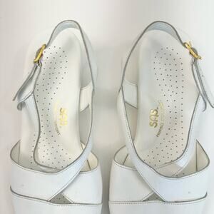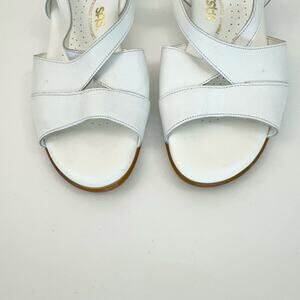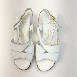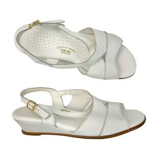 SAS Tripad Comfort White Cross-Strap Sandals Leather Kitten Wedge Heel Size 8.5M