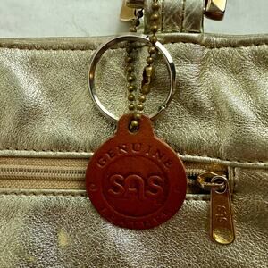 SAS VTG Diane Gold Leather Handbag Purse Tote Bag With Keychain Glam READ