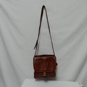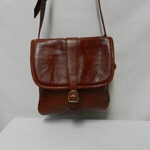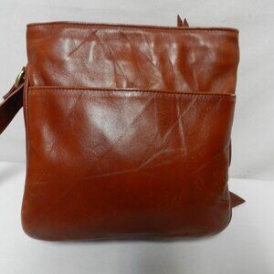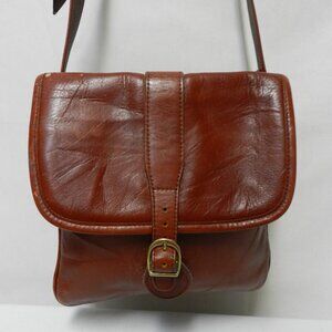 SAS Vintage Leather shoulder bag purse brick brown 2 compartments Back Pocket