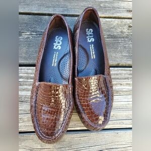 S.A.S. Womens 6 brown leather gator print simply comfort loafers, Tri-Pad® Comfort System cushions the three pressure points of your foot: the inside ball, outside ball and heel.