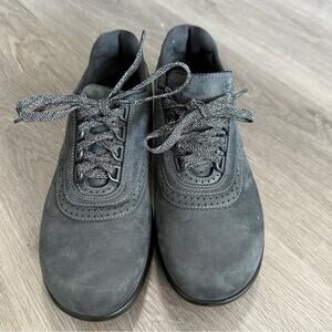 SAS Walk Easy Lace Up Walking Shoe Slim Nubuck Leather in Charcoal Gray Nero 7.5