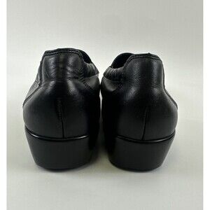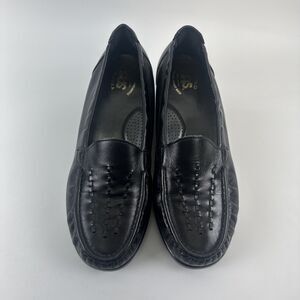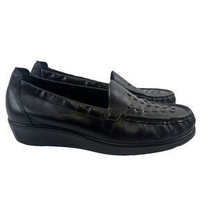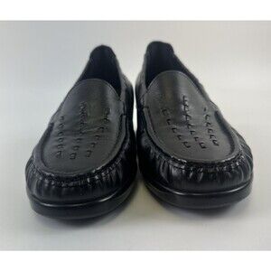SAS Weave Slip On Loafer Black Leather Moc Toe Wedge Comfort Womens 8 W Wide.