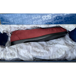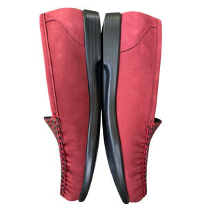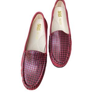 SAS Women's 10M Red Tetris Nubuck Leather Slip-On Comfort Heritage Loafers NWB. Classic comfort shoe for a shopping day out or indoor workwear. Pair with trousers for a minimalistic polished work style. Brings a pop of color to a neutral color palette. Pair with Jeans for casual Heritage style. Tri-Pad comfort in-sole for all day comfort wear.