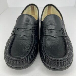 SAS Womens Black Penny Handsewn Leather Soft Teel Heel Slip-On Size 7 Loafers