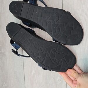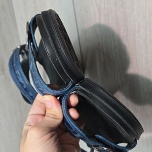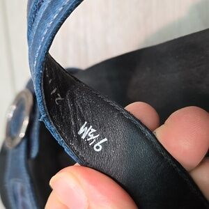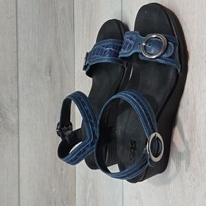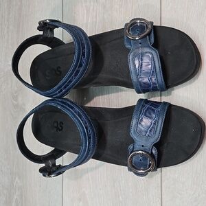 SAS Women's Blue Sandals with Silver Buckles Leather Wedge Shoes Sz 9.5M