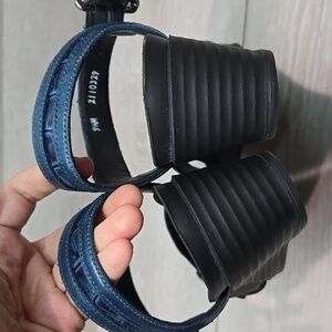 Step out in style with these elegant blue sandals featuring chic silver buckles. Perfect for any occasion, these sandals offer both comfort and fashion.