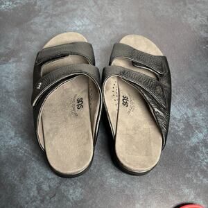 SAS Women's Cozy Slide Sandal Black Leather Comfort Shoe Adjustable Strap Size 7