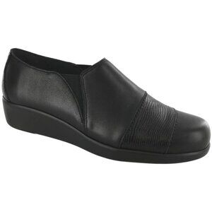 SAS Womens Nora Slip On Loafers Size 9W Black Wedge Leather Comfort Casual