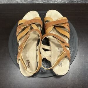 SAS Womens Size 10W Pier Heel Strap Sepia Leather Brown/Tan Comfort Sandals