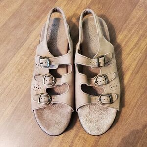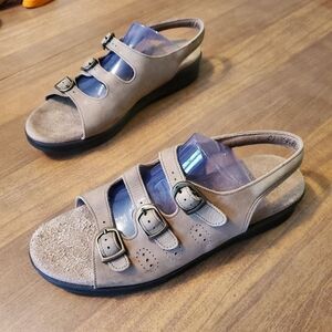 SAS Women's Size 9.5N Taupe Trio Tri-Pad Triple Strap Comfort Sandals Slingback