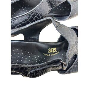 SAS Women's Slingback Sandals Size 9 Narrow Patent Leather Black Crocs Print