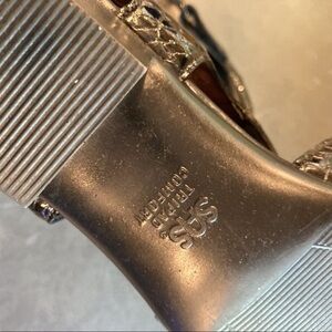 SAS sz 7.5 Suntimer Heel Strap Sandal black patent croc
