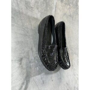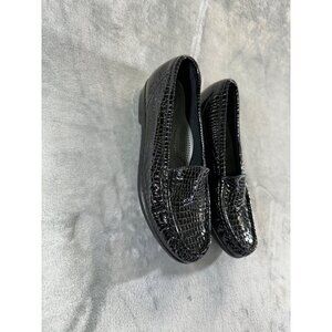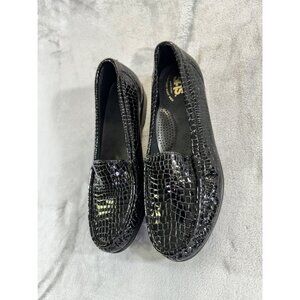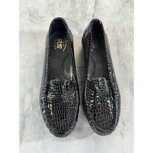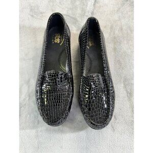 SAS women's size 7.5 M black patent leather comfort slip on loafers Alligator pr