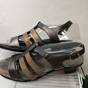 SAS Allegro Heel Strap Metallic Leather Dressy Comfort Sandal Size 11