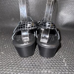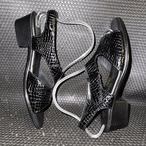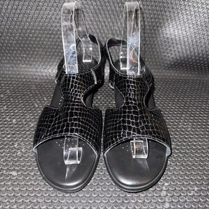 SAS Open Toe Suntimer Black Patent Leather Croc Print Tripad Sandals Size 8.5