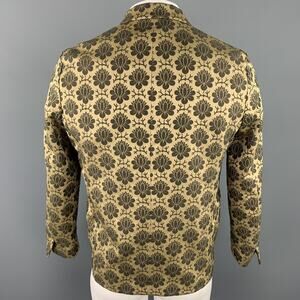 SASQUATCHfabrix sport coat comes in a gold & brown floral polyester / cotton with a half black liner featuring a notch lapel, slit pockets, and a single button closure. Made in Japan.