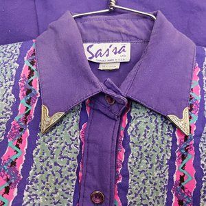 SASSA| Vintage Purple Western Southwestern Rodeo Button Down Shirt Size Small