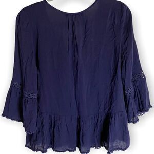 SASS Navy Blue Boho Three Quarter Sleeve Blouse