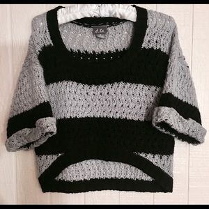 Very trendy hi low crop top sweater. Chunky style very light weight, comfy and soft. Has 3/4 sleeves. Size S