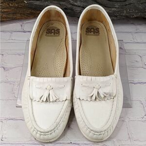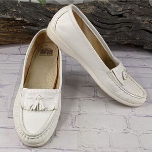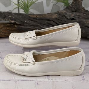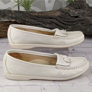 SAS White Leather Softie Kiltie Tassel Slip On Loafers - Size 8N (Narrow)