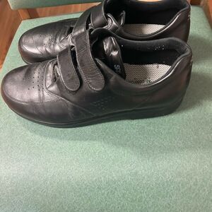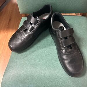 Stylish and comfortable men's black leather shoes with convenient Velcro straps. Perfect for everyday wear.