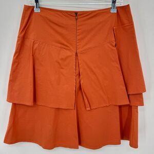 SATHIA Burnt Orange Asymmetrical Tiered Lightweight Skirt Size M Medium