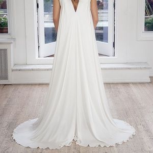 Lakum is a Brooklyn based bridal boutique. This is a sample used for photoshoots/store display, offered at a much-reduced price point. May contain stains. Detail shots available.