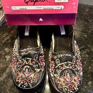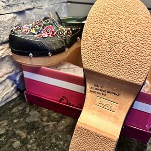 Women's size 6, Satin, beaded, embroidered clogs, man made material , NEW in box, never worn..