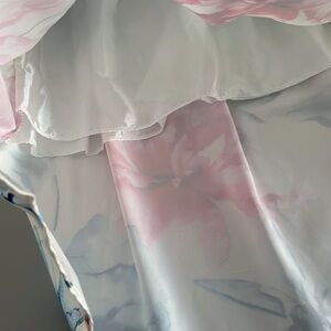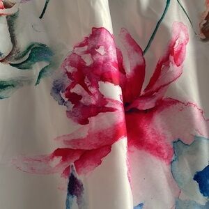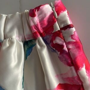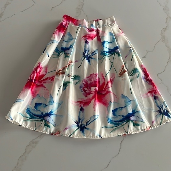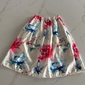 New without tags. Gorgeous lined full midi skirt with watercolor flowers. Hidden side zipper with elastic band in the back. Unstretched 12” waist, 25” length.