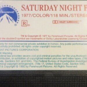 Nice, well kept VHS copy of SATURDAY NIGHT FEVER - 1977 - John Travolta - 1994 Release - Tested - Plays Well - Box is in Good Condition - Minor wear around bottom corners, not bad though - These classics on VHS are slowly disappearing as time goes by - Grab them now while they're still available, still reasonably priced.