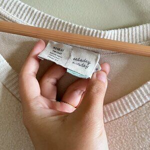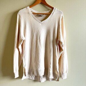 SATURDAY SUNDAY Anthropologie Womens Ivory Hacci V Neck Sweater Tunic Top Sz XS