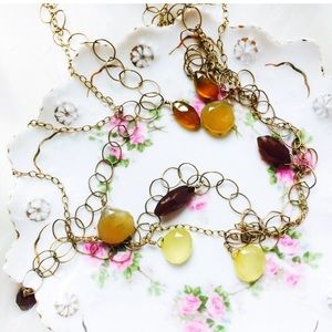 . \\Satya// Stunning genuine stone and gold plated 14karat gold large jump rings ::: Approximately [1.5FT] in length :::: Satya charm stamp came off but it is genuine ::: In near perfect condition :: Worn once ::: Bought in Soho ::: Please ask any + all questions prior to purchase + review photos ::: Photos of actual item for sale ::: home•