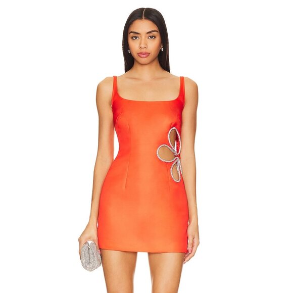 SAU LEE Betty Mini Dress in California Orange Satin Flower Cutout 0 XS