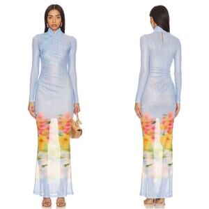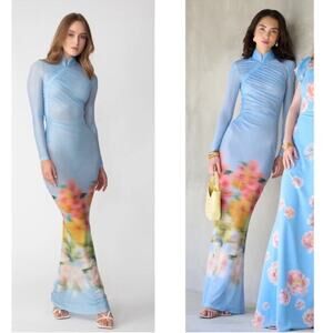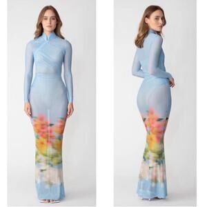 Sau Lee Kendra Mesh Sheer Blurred Floral Long Sleeve Blue Maxi Dress Size 0 is brand new with tags! Sold out everywhere!